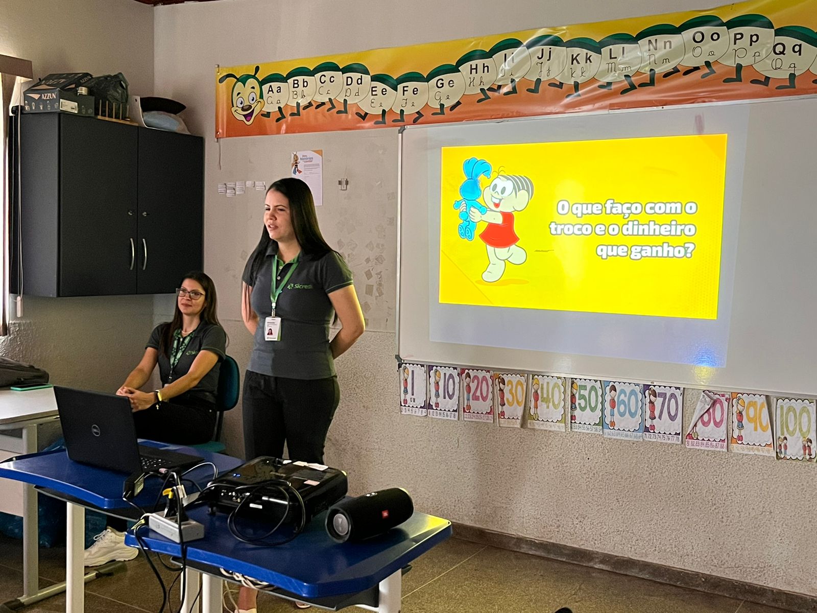 Quem também esteve presente foi a equipe do Sicredi Diamantino, que explicou sobre a importância do cuidado, zelo e economia do dinheiro, a partir de conversas, brincadeiras e episódios da Turma da Mônica.