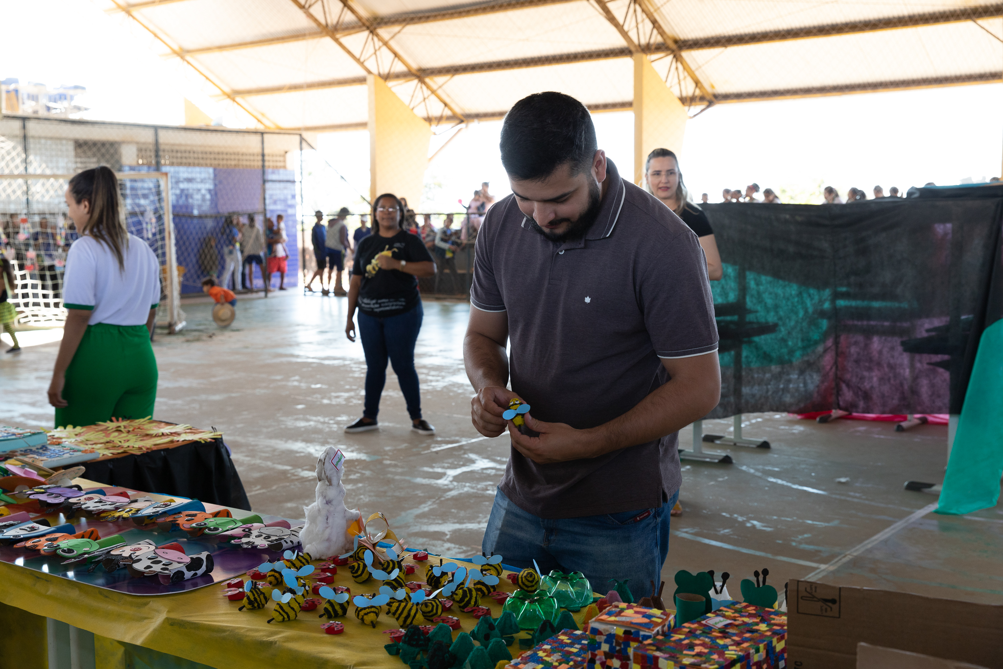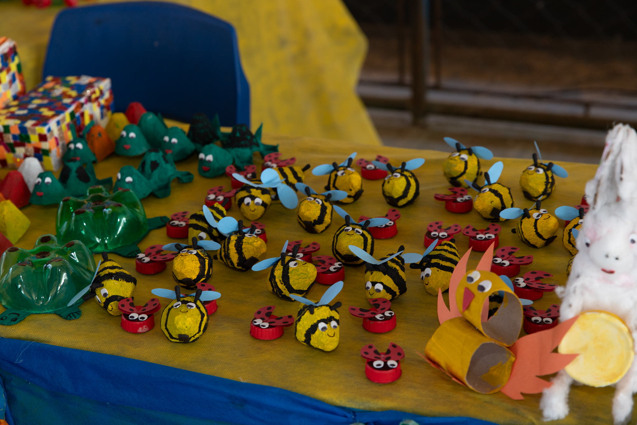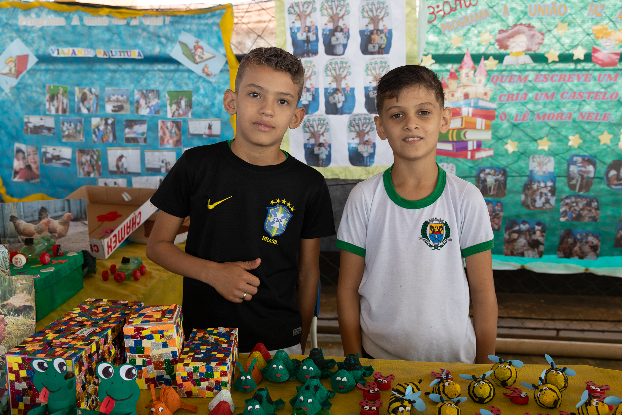 Outro projeto trabalhado dentro do programa foi o reaproveitamento de materiais para criação de brinquedos ecológicos feitos pelos estudantes. A gastronomia também estava presente com a turma do 5º ano que fizeram, juntamente com os pais, bolos, salgados para comercializarem na oficina.