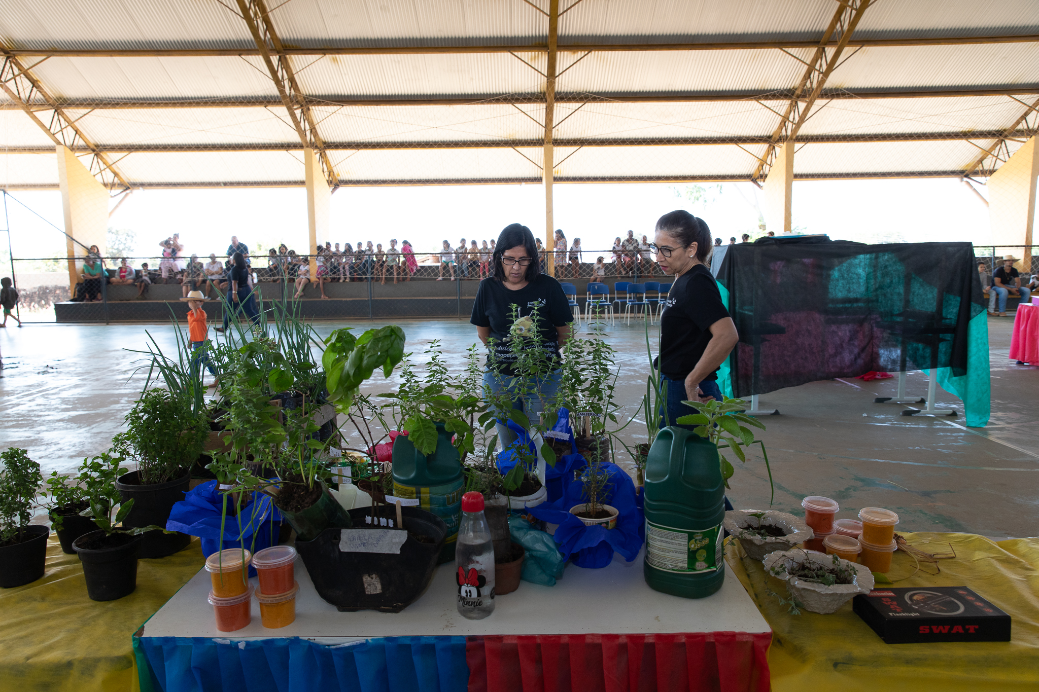 A aluna do 1º ano, Sofia Vitória Nonato, de 7 anos, contou sobre a erva aromática que plantou para poder vender na oficina. “Eu plantei com minha mãe uma plantinha de folha verde (hortelã), eu molhei, coloquei esterco e ela cresceu e hoje eu trouxe para vender.”