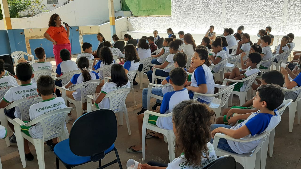 Aos pequenos, a palestra ministrada pela secretária de estado e assistência social, Fátima Vieira do Prado, levou a base de informações sobre os tipos de violência, o que é a Lei Maria da Penha e quais os amparos e redes de apoio disponíveis no município e estado.