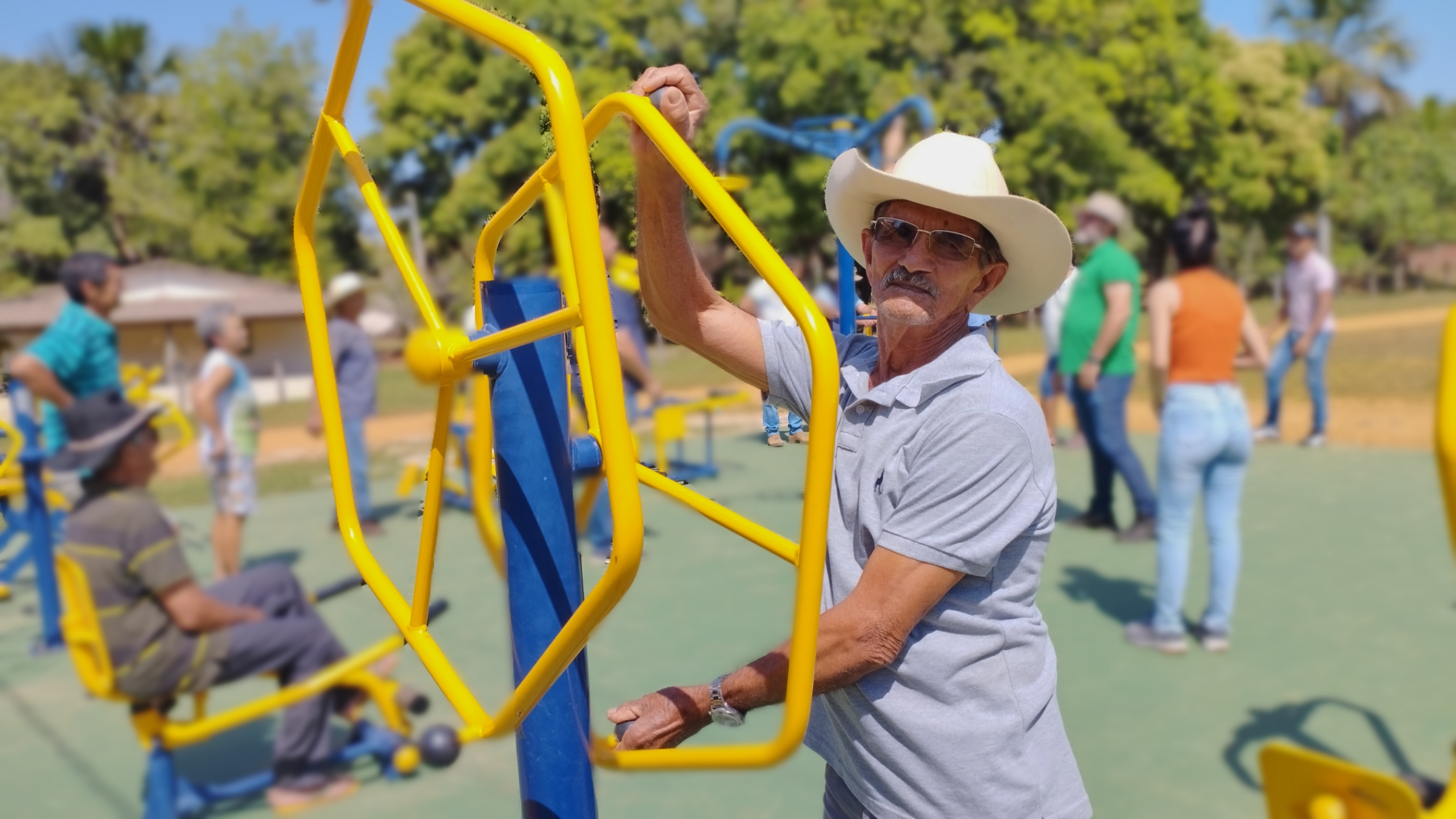 “A gente sempre teve o sonho de ter uma academia aqui. Nós fazemos caminhada em volta do campo das cinco às seis da tarde e quando o Dr. Manoel veio nos conhecer, ele prometeu que a academia seria feita e agora nosso sonho foi realizado”, compartilha Dona Maria emocionada.