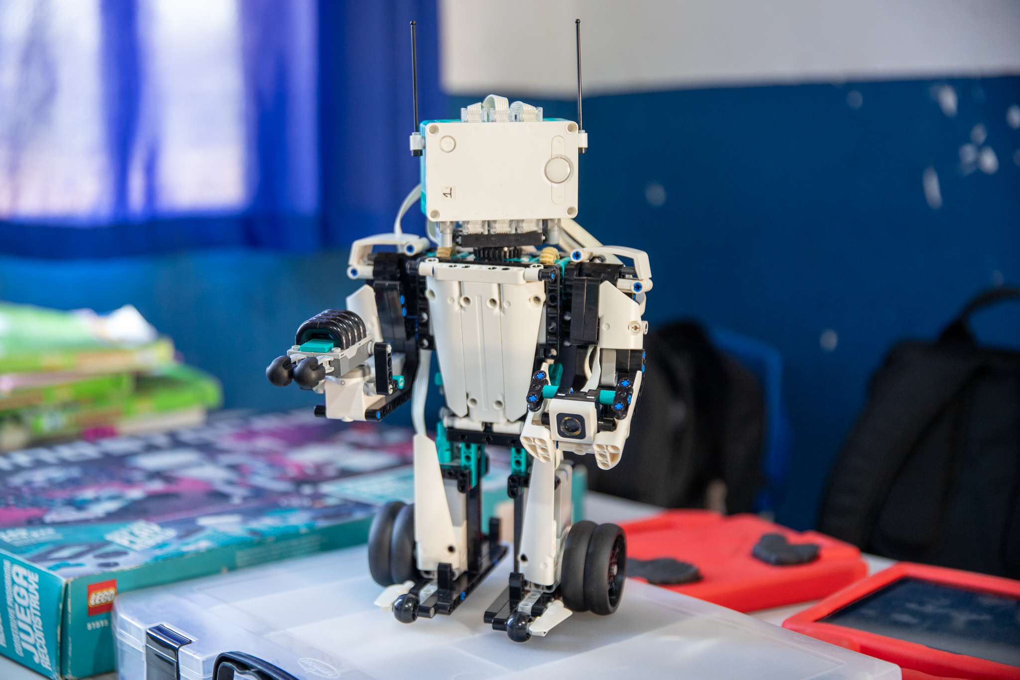 “Nosso objetivo é proporcionar aos alunos uma experiência educacional enriquecedora, na qual a lógica de programação não é apenas utilizada para controlar processos digitais, mas também para controlar processos físicos e mecânicos. Para alcançar esse objetivo, os alunos estão programando e montando robôs Lego em suas mesas em equipes.”