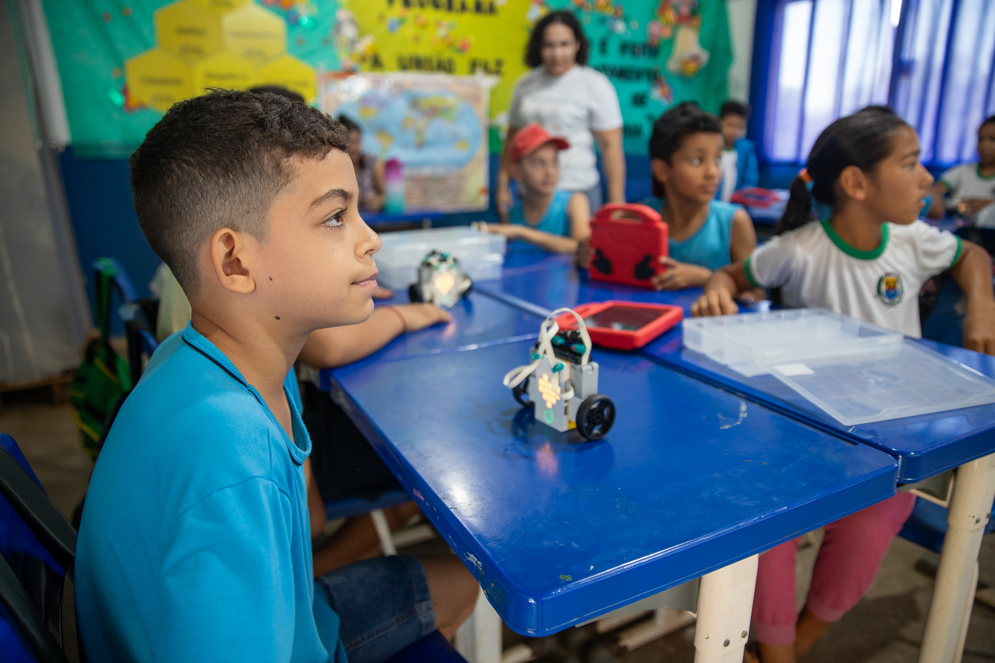 De acordo com a professora e engenheira de computação do programa, Dayanni Elias, o conteúdo da primeira aula englobou a introdução à robótica, lógica, programação e montagem do carro robô de lego.