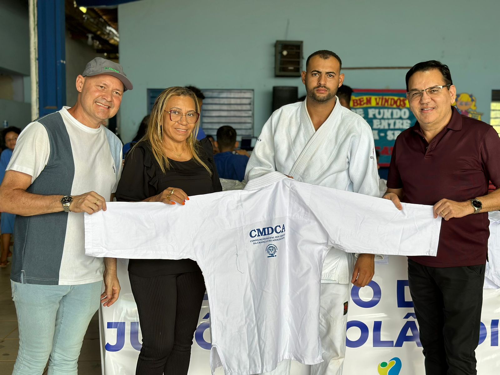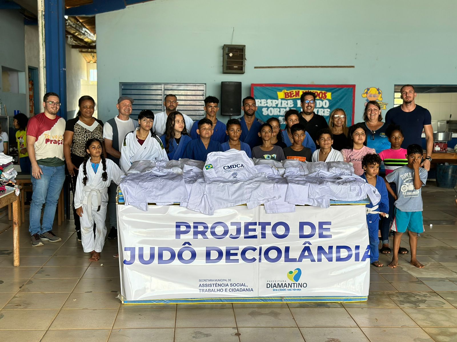 O Conselho Municipal dos Direitos das Crianças e dos Adolescentes (CMDCA) de Diamantino (MT), por meio do Fundo Municipal do Direito da Criança e do Adolescente (FMDCA), entregou cerca de 30 quimonos e 30 placas de tatames ao projeto Judô Deciolândia. A entrega, que ocorreu durante o “Te Vejo na Praça” no início de abril, contou com a presença do Prefeito Municipal Dr. Manoel Loureiro, dos secretários Gilson da Silva, Caíque Loureiro e Rosi Carris, do vereador Diocélio Pruciano, da presidente do CMDCA Donata Glorinha e do professor Eliezer Garcia com os alunos do projeto.