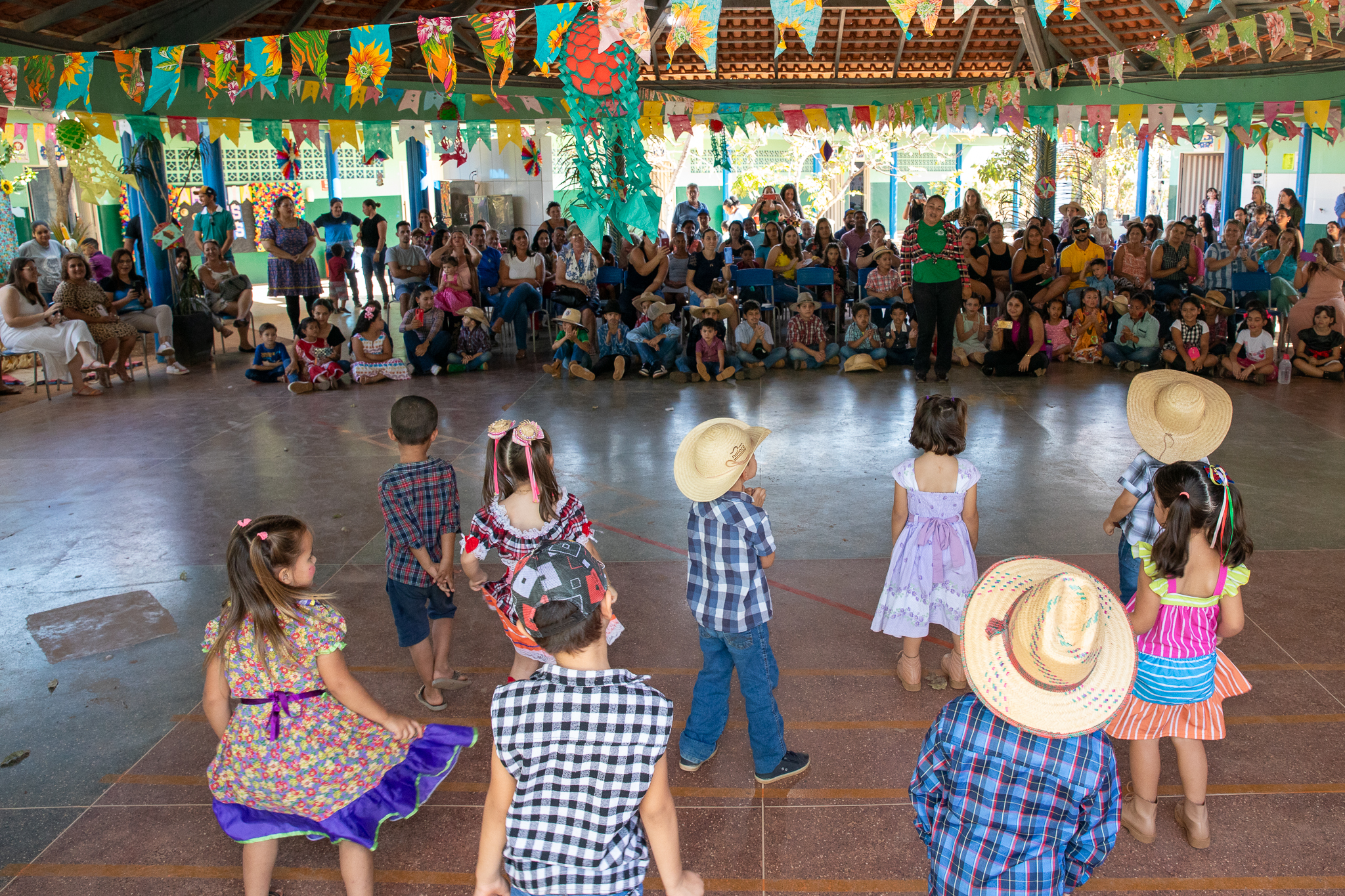Cerca de 100 crianças e seus familiares comemoraram o “Arraiá dos Pais” na Escola Municipal Castro Alves, unidade de ensino da Secretaria de Educação de Diamantino. A celebração aconteceu na área rural da Caeté no início do mês e reuniu toda comunidade escolar.