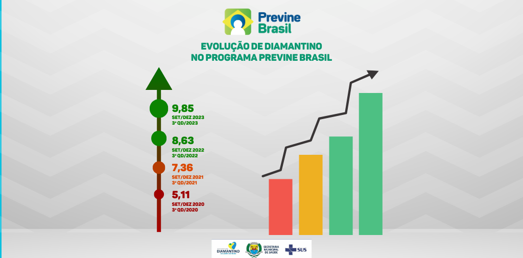 A Prefeitura de Diamantino é destaque na saúde pública por alcançar uma nota alta no Programa Previne Brasil. No terceiro quadrimestre de 2023, a saúde do município obteve uma pontuação de 9,85, certificando o cuidado e a qualidade dos serviços da Atenção Primária à Saúde (APS) de Diamantino.
