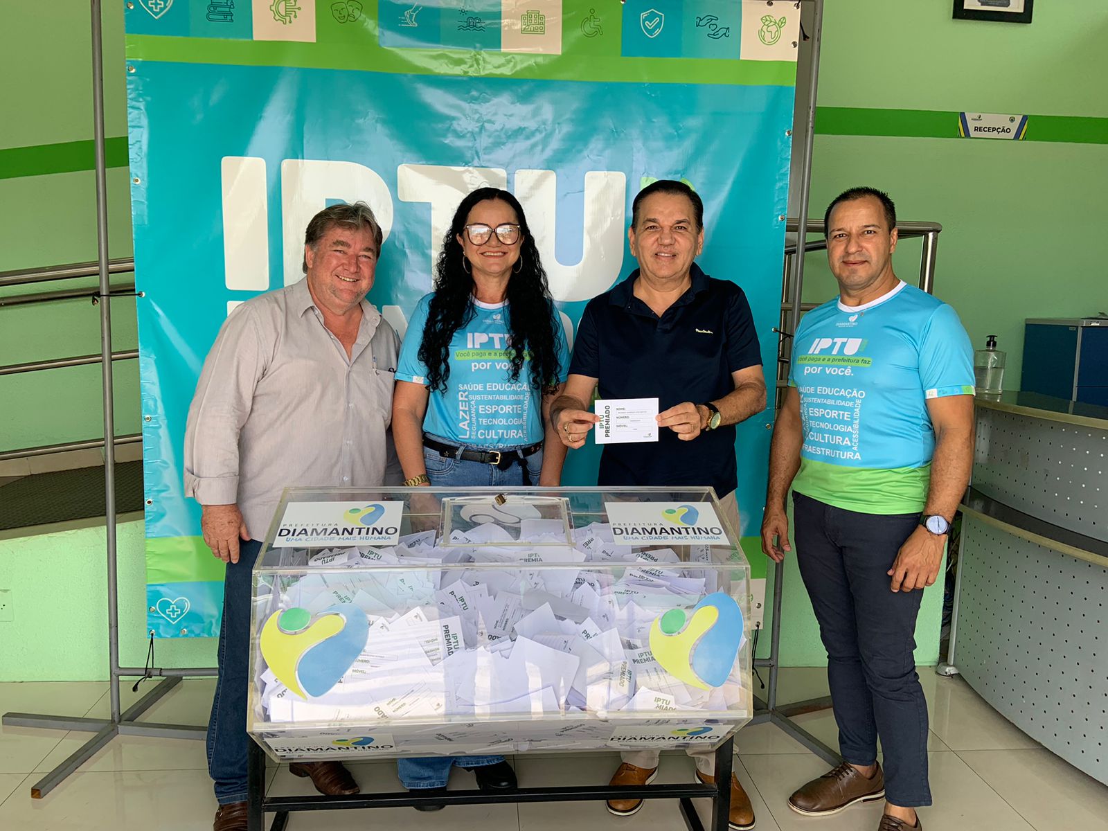A Prefeitura de Diamantino, por meio da Secretaria Municipal de Fazenda, realizou a 7ª edição da premiação Programa IPTU Premiado 2023. Os sorteios foram realizados nesta sexta-feira (24.11), na recepção da prefeitura.