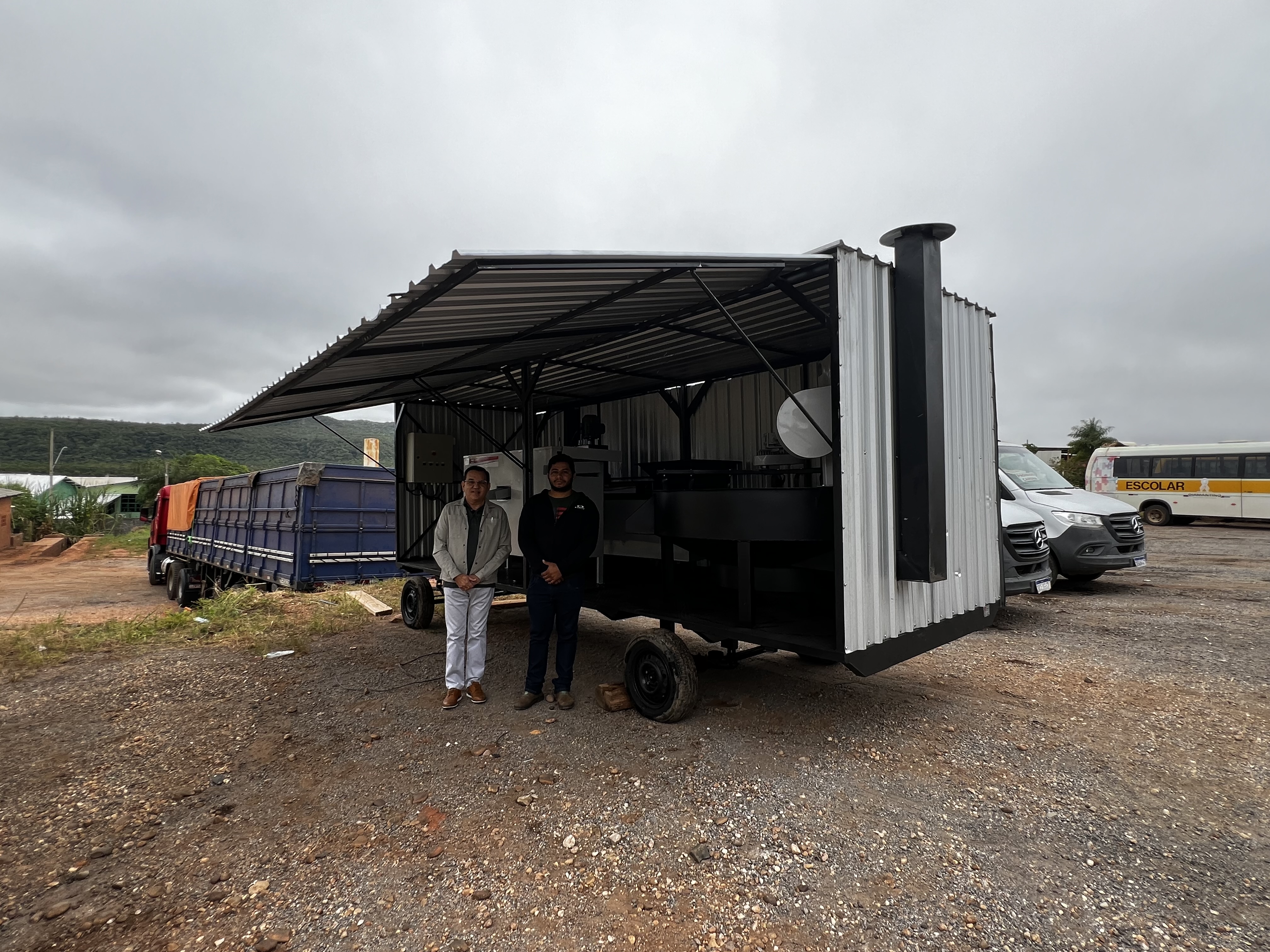 “A nova aquisição da farinheira móvel além de fácil transporte, também realiza o processo completo, desde lavar a matéria prima, descascar, triturar, prensar e torrar a farinha.”