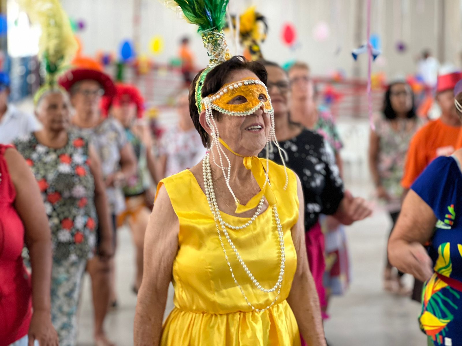Os idosos dançaram, cantaram as tradicionais marchinhas carnavalescas, participaram das atividades de ginástica aeróbica e encerraram a tarde com sorteio de lembrancinhas.