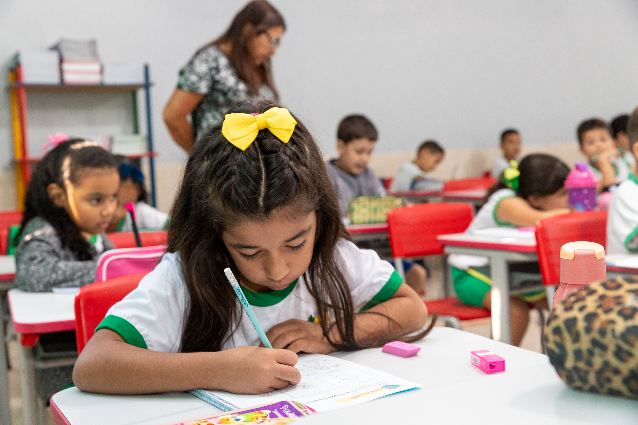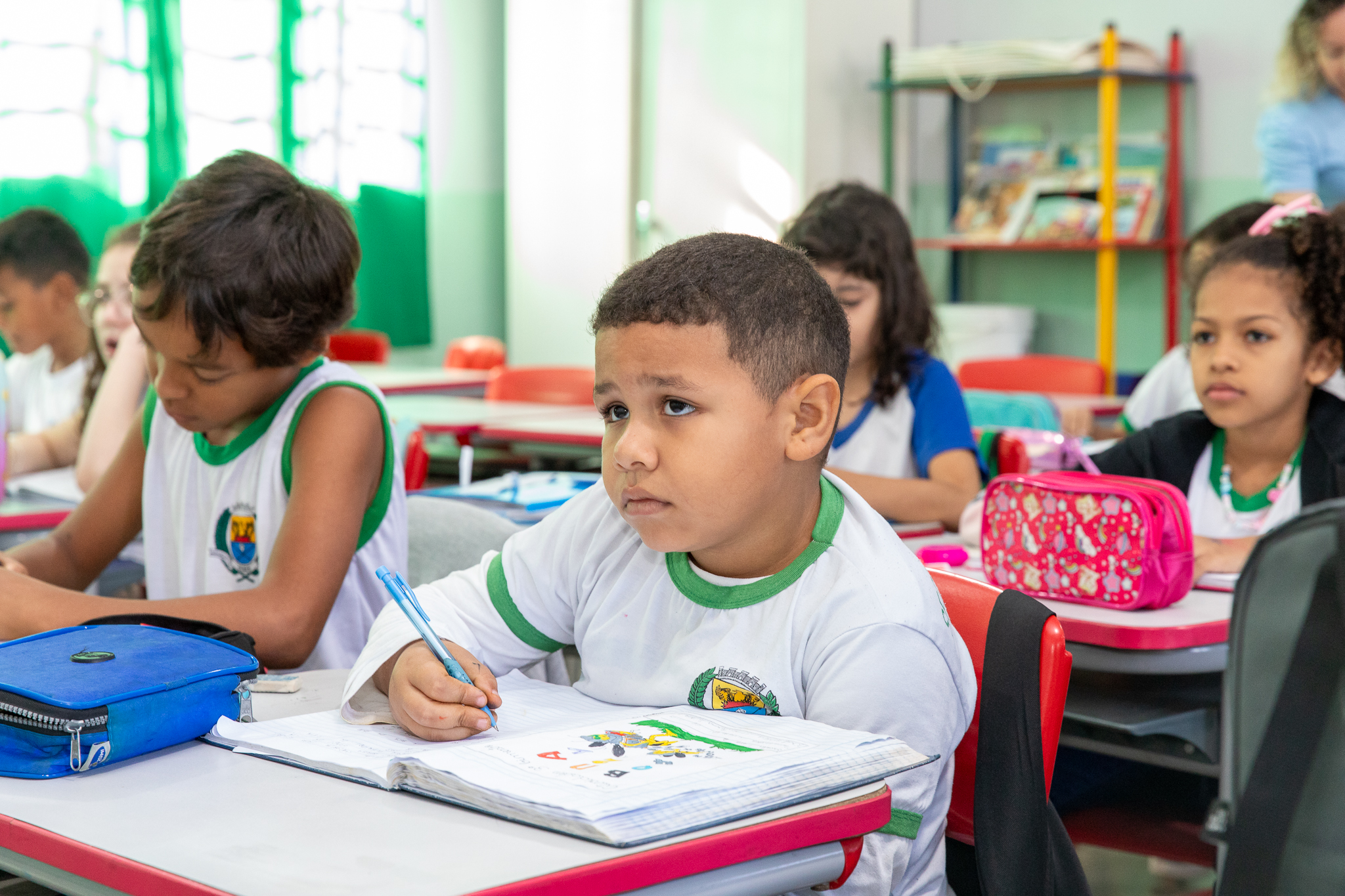 Com a chegada de novos alunos no segundo semestre, a Secretaria de Educação reforçou que os mesmos também foram atendidos com os kits escolares da Prefeitura. Nos kits estão inclusos o uniforme, pares de tênis e crockers, livros, lápis, borracha, apontador, lápis de cor, cadernos, tinta guache, pincéis, giz de cera e outros itens.