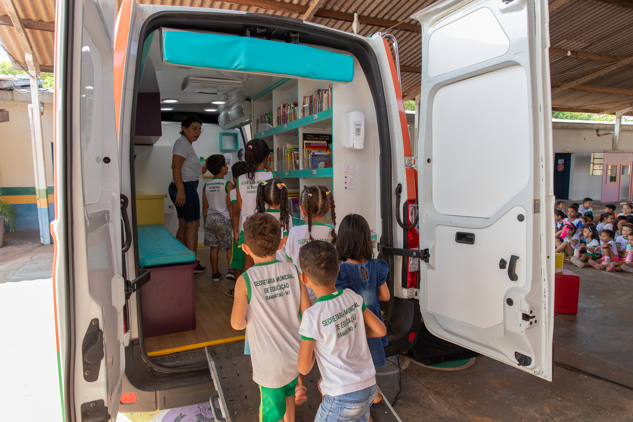 Com apoio da Secretaria Municipal de Educação, seis escolas municipais de Diamantino receberam durante cinco dias, de 11 a 15 de setembro, o furgão da biblioteca itinerante. Na ação, mais de mil crianças puderam ter contato com atividades lúdicas de incentivo à leitura. O veículo faz parte de um projeto de biblioteca móvel selecionado pelo Programa Nacional de Apoio à Cultura (Pronac).