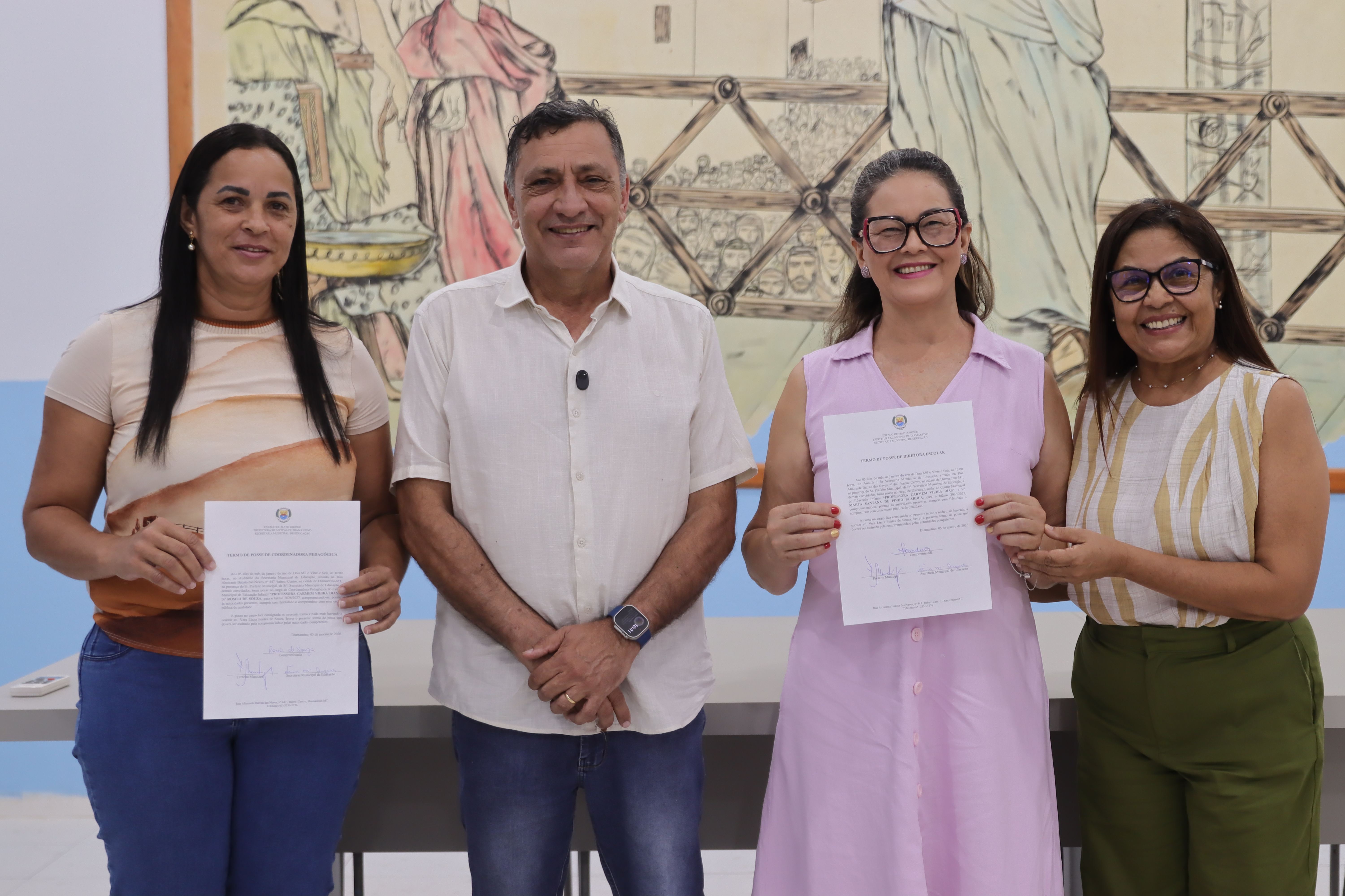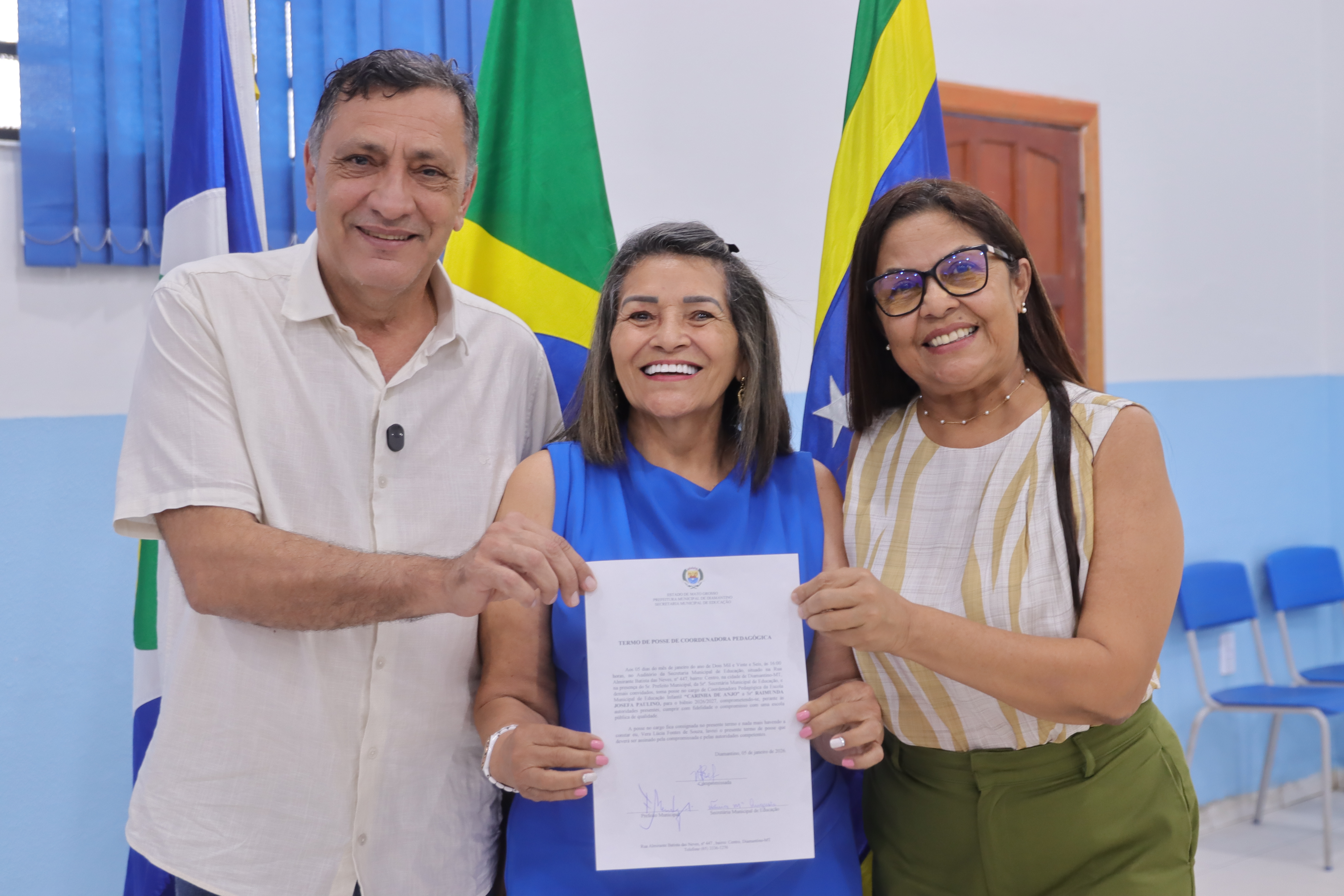 A Prefeitura de Diamantino, por meio da Secretaria Municipal de Educação, realizou na segunda-feira (05.01), no auditório da secretaria, a cerimônia de assinatura do termo de posse das novas diretoras e coordenadoras pedagógicas da rede municipal de ensino.