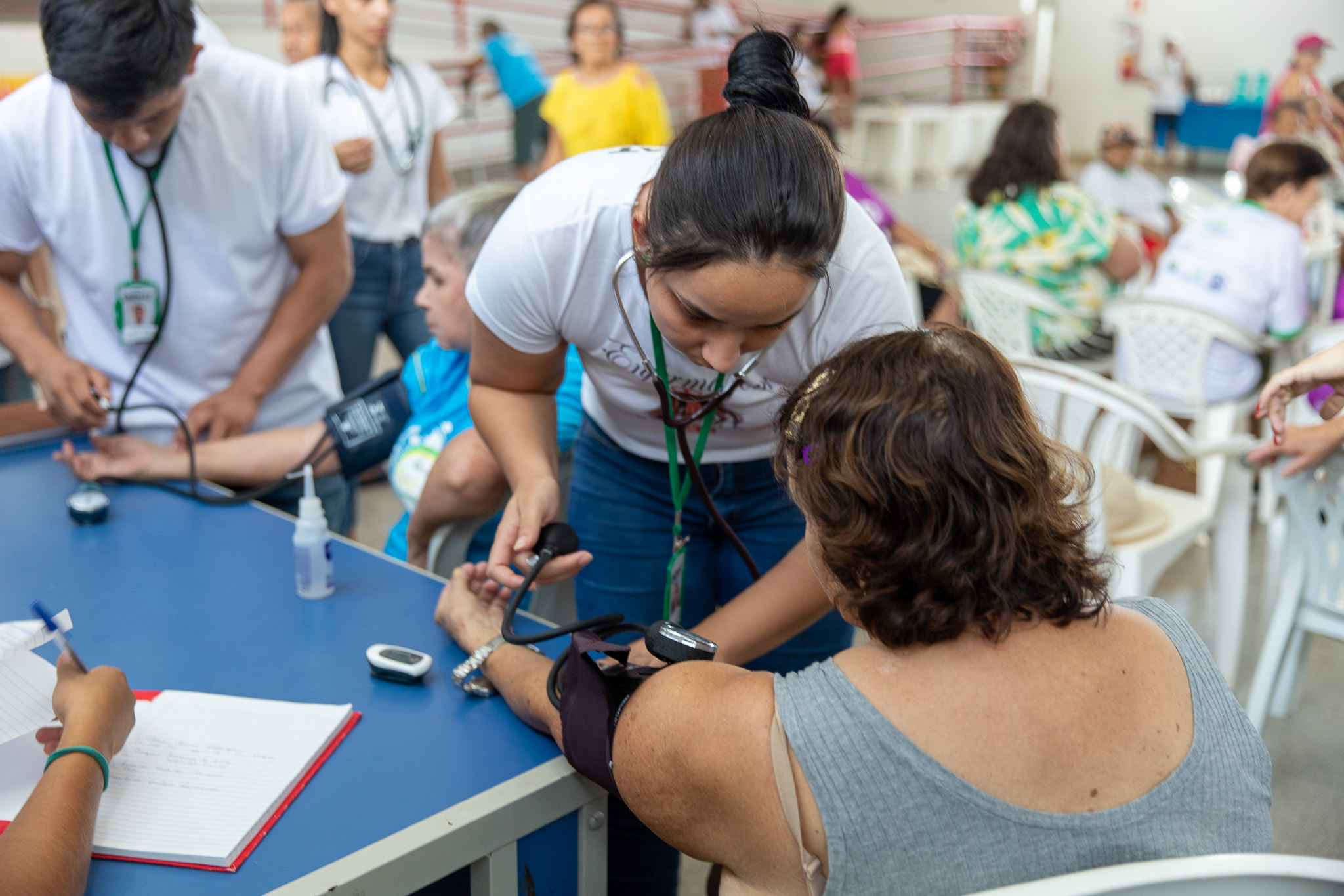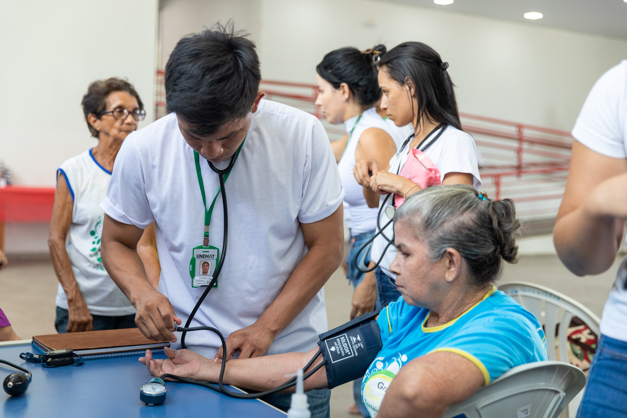 Antes de realizarem as atividades na piscina, todos os idosos passaram por uma triagem com aferição de pressão e saturação.