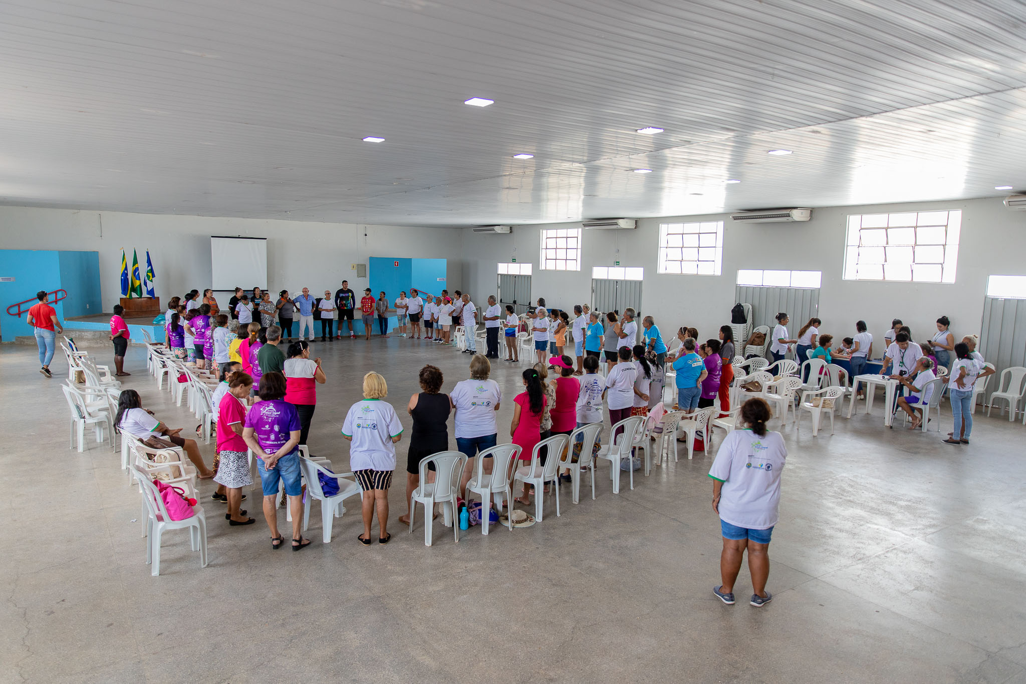 Para aqueles idosos que não quiseram fazer a hidroginástica, foi ofertado uma atividade também com exercícios para que pudessem se movimentar e ter os benefícios de uma atividade física.