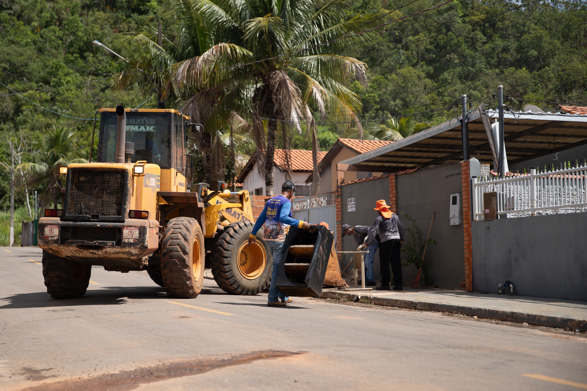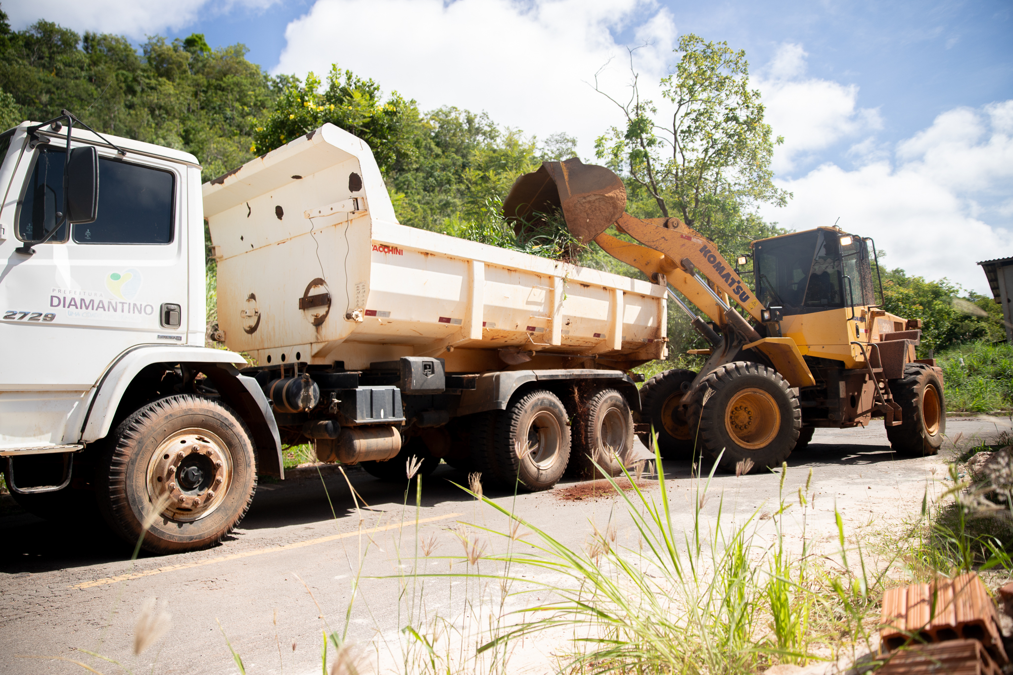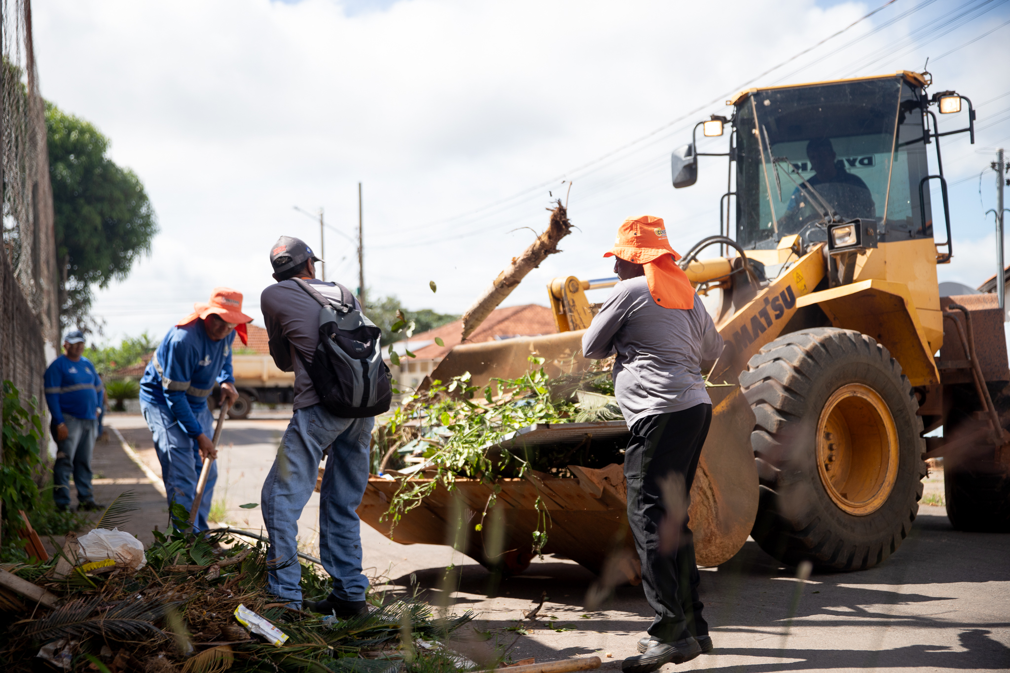 Os servidores da Secretaria de Infraestrutura e Obras recolheram com pá carregadeiras, caçambas e caminhões os lixos e entulhos.
