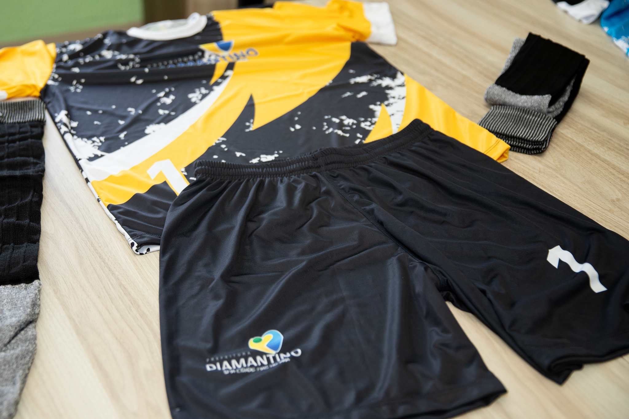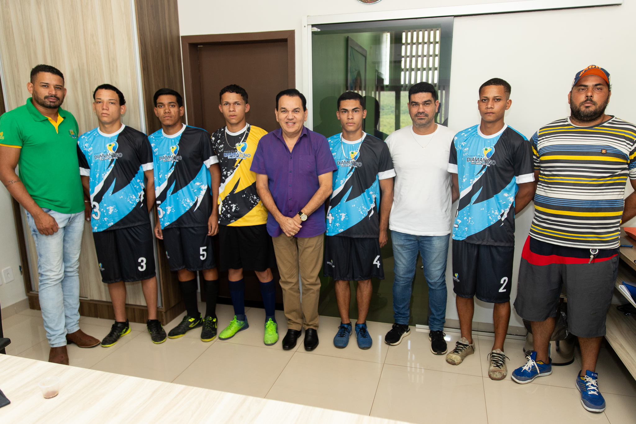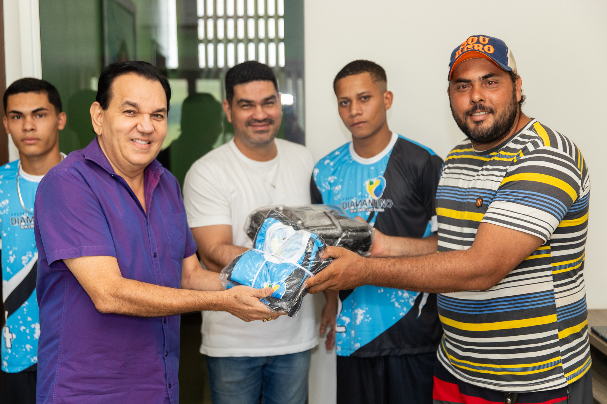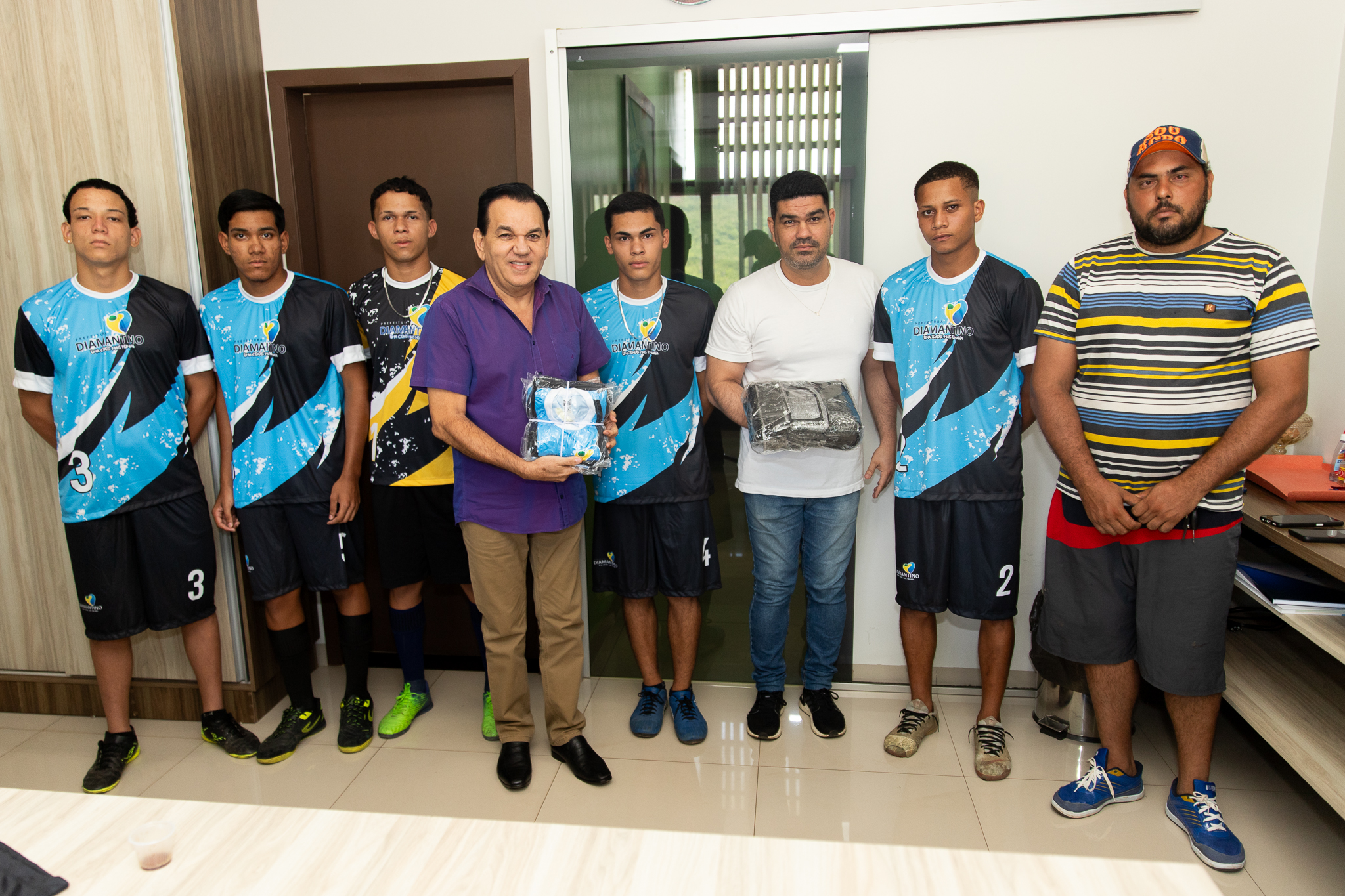 A Prefeitura de Diamantino, por meio da Secretaria Municipal de Esportes e Lazer, realizou na quarta-feira (06.12) a entrega de 12 kits de uniformes para atletas de futebol local. A entrega foi realizada na prefeitura e contou com a participação do prefeito Dr. Manoel Loureiro e o secretário da pasta, Avelino Bezerra.