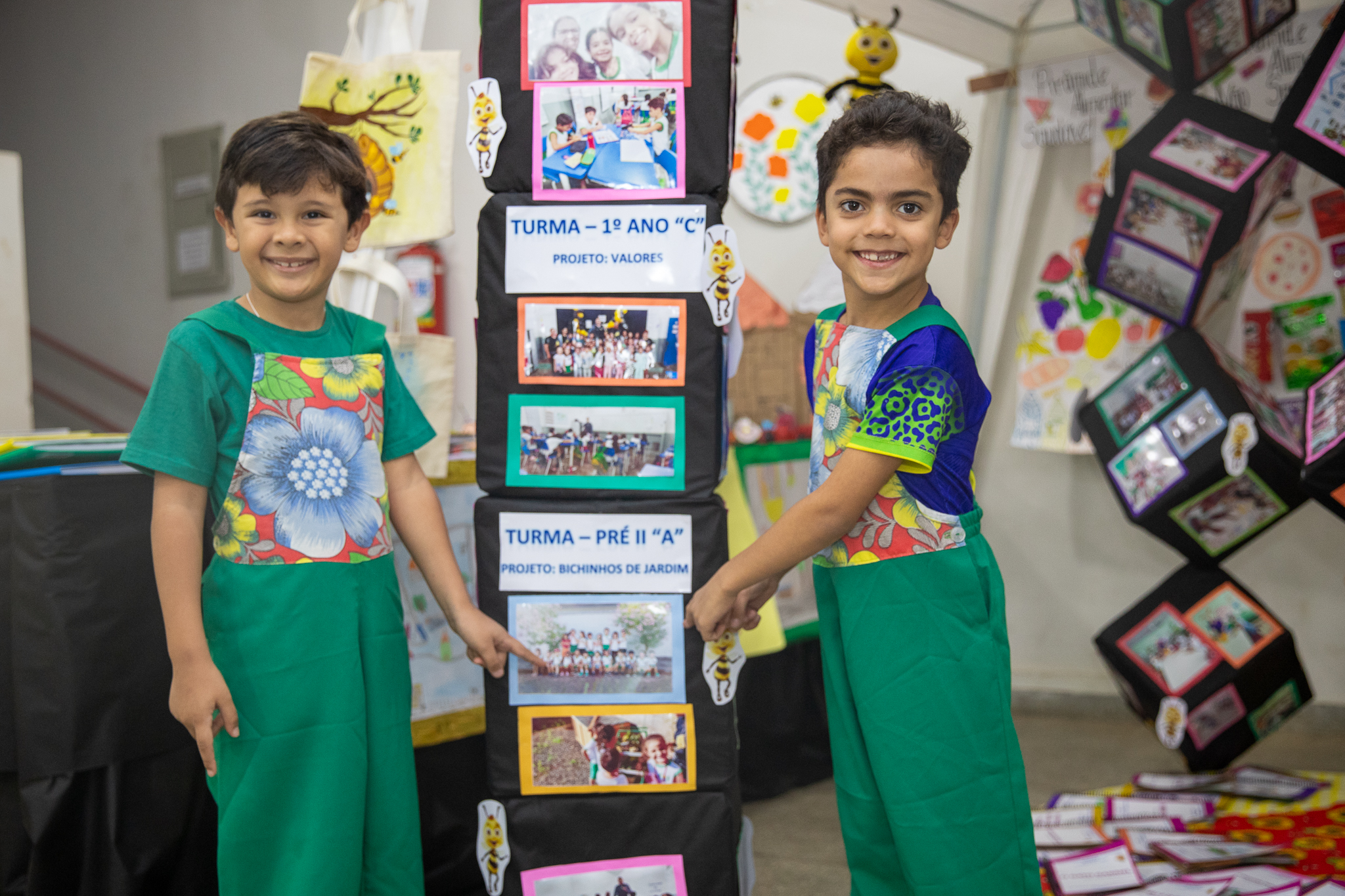 Já os alunos da educação Infantil da Escola Municipal Elza Martins de Queiroz Oliveira, sendo pré I e II com o Ensino Fundamental do 1° ao 5° ano, apresentaram o projeto “Meu Bairro Minha Comunidade” com pinturas reproduzindo a escola, miniatura do ESF e o ônibus escolar. Os pequenos também apresentaram o “Jornal dos Alunos” e uma maquete do Bairro Pedregal onde a escola é localizada.