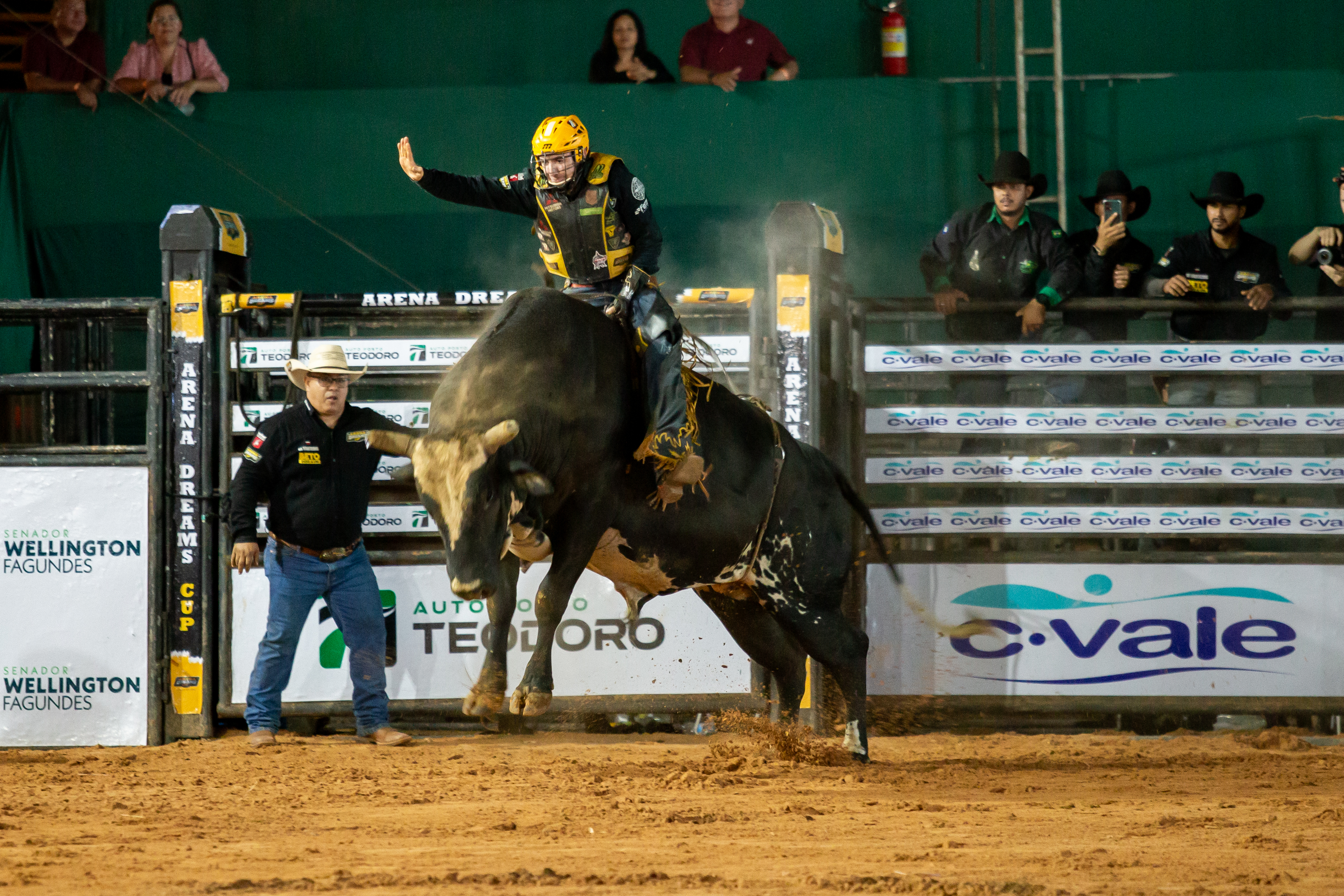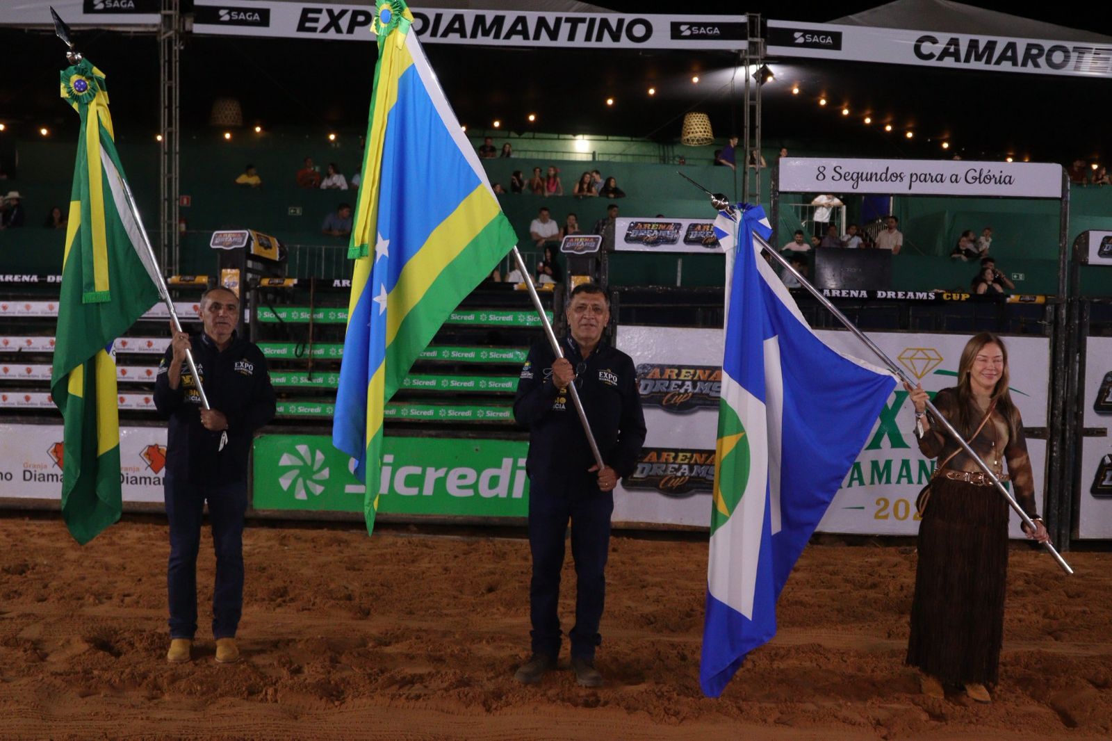 Em seguida, o rodeio animou o público com montarias em touros. Os competidores entraram na arena em busca da premiação, que soma R$ 30 mil distribuídos entre os melhores colocados da competição. No intervalo das apresentações, o público também cantou parabéns em comemoração aos 297 anos de Diamantino.