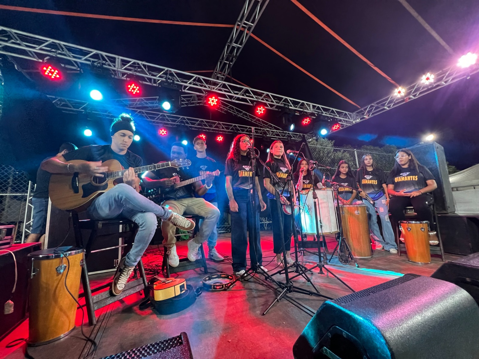 O grupo musical do projeto social Diamantes tocou, ao vivo, sucessos do samba e múscias populares brasileiras. A banda, formada por alunos que também participam de projetos sociais oferecidos pela Secretaria de Assistência Social, recebeu o carinho do público.