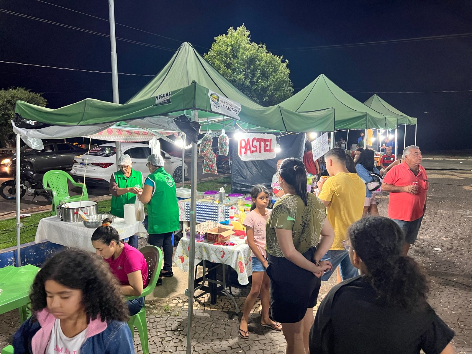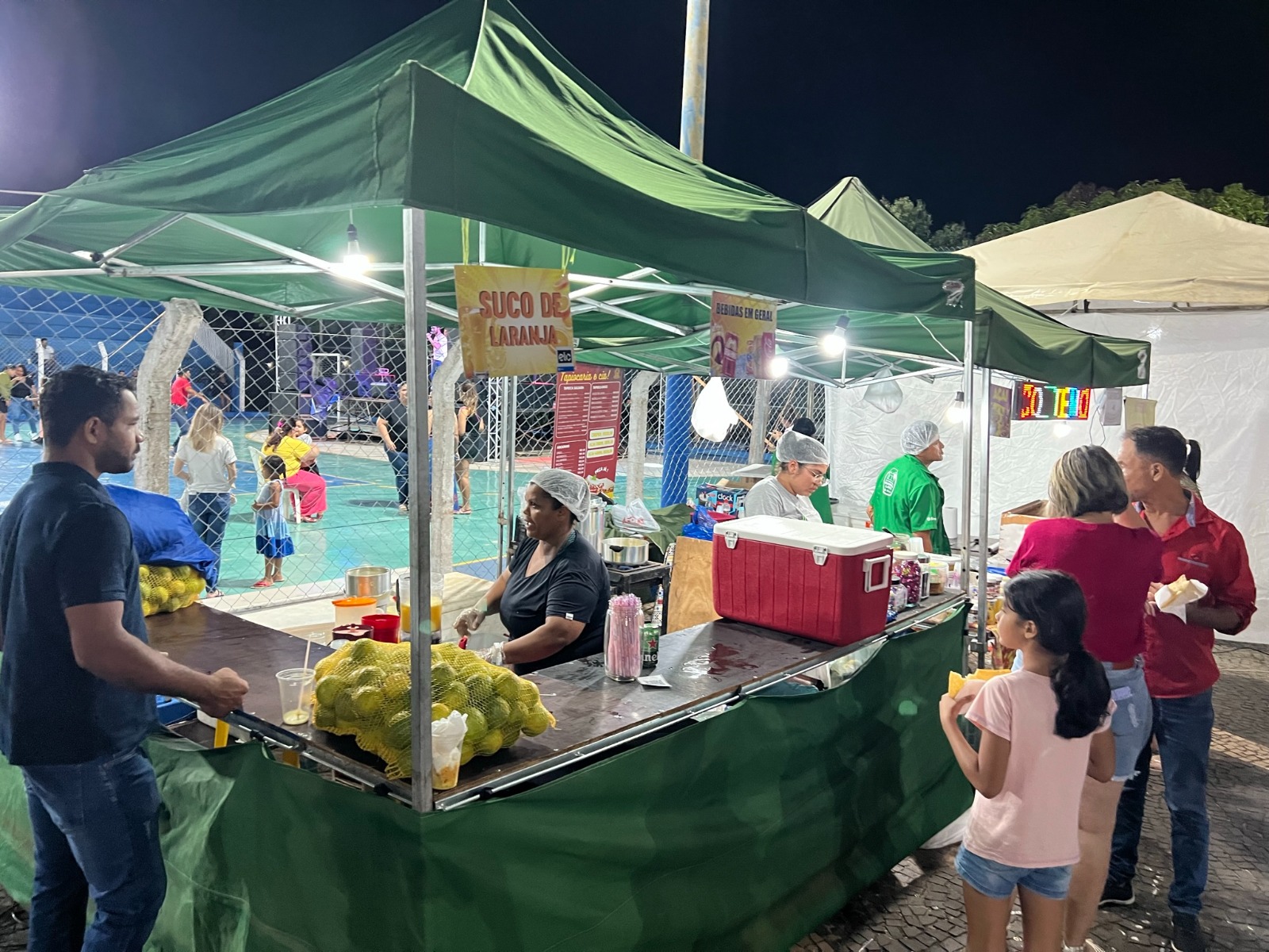 A praça de alimentação foi uma atração à parte com diversas opções de comidas e bebidas comercializadas pelos empreendedores da feira local. Os feirantes chegaram cedo para atender o público, vender seus produtos e garantir uma renda extra com o evento.